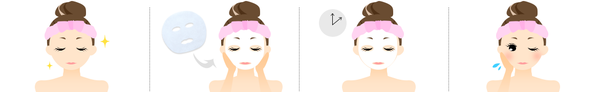 ※必ず乾く前にはがしましょう。はがす前に掌でゆっくり押さえて美容液を浸透させるようにしましょう。より浸透がよくなります。